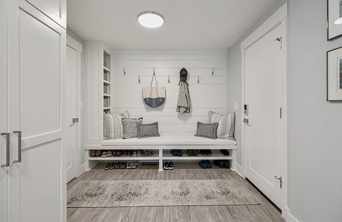 There is more attention to cabinetry in laundry rooms and mudrooms lately. We see more clients want drop zones with docking drawers and organization. People still like hooks – they are popular. People are getting more purposeful with laundry storage like they are in their kitchen. They want to optimize the space well.