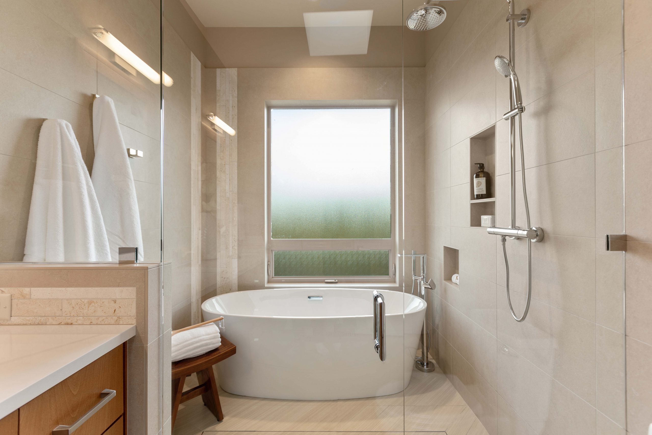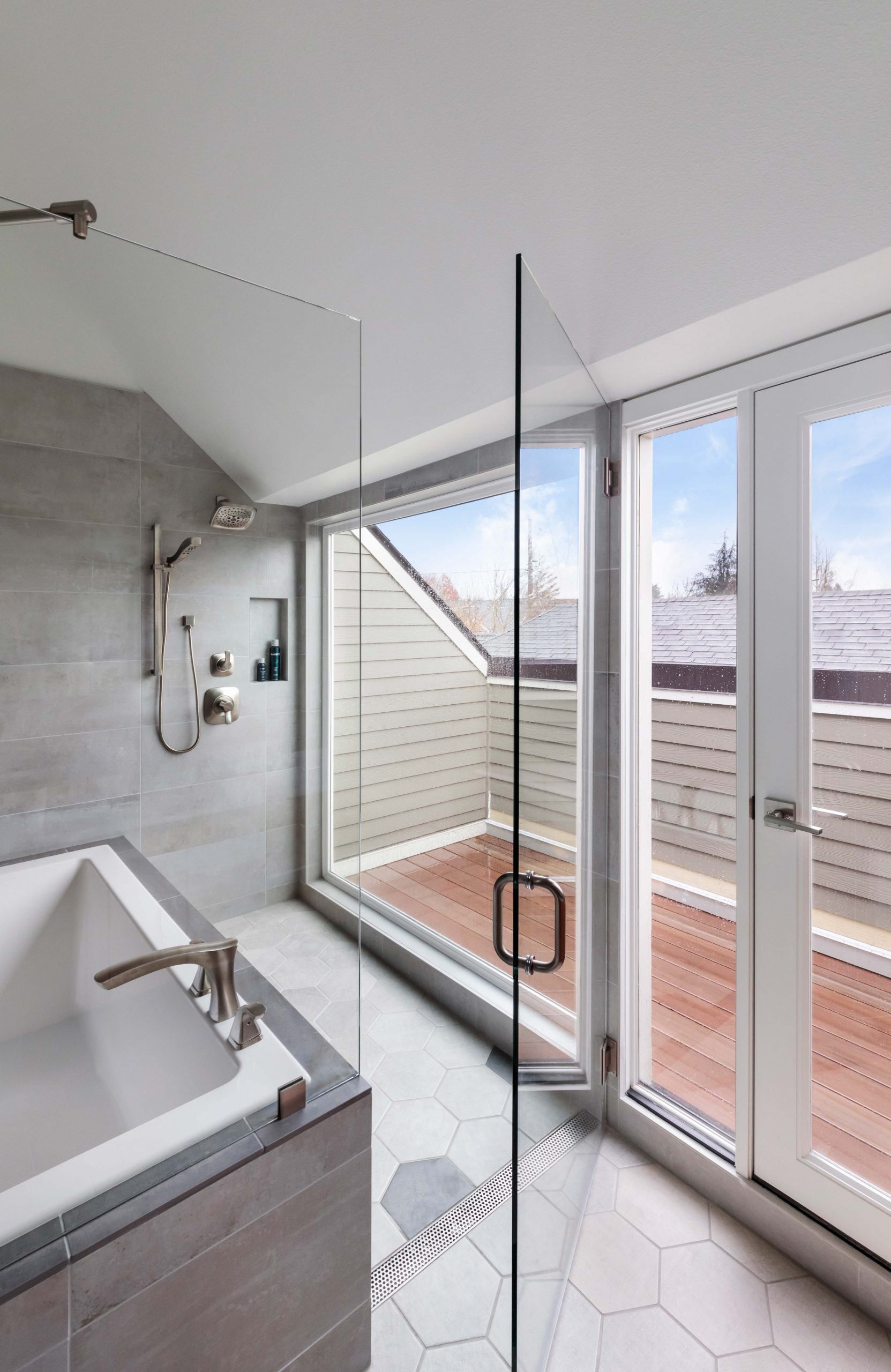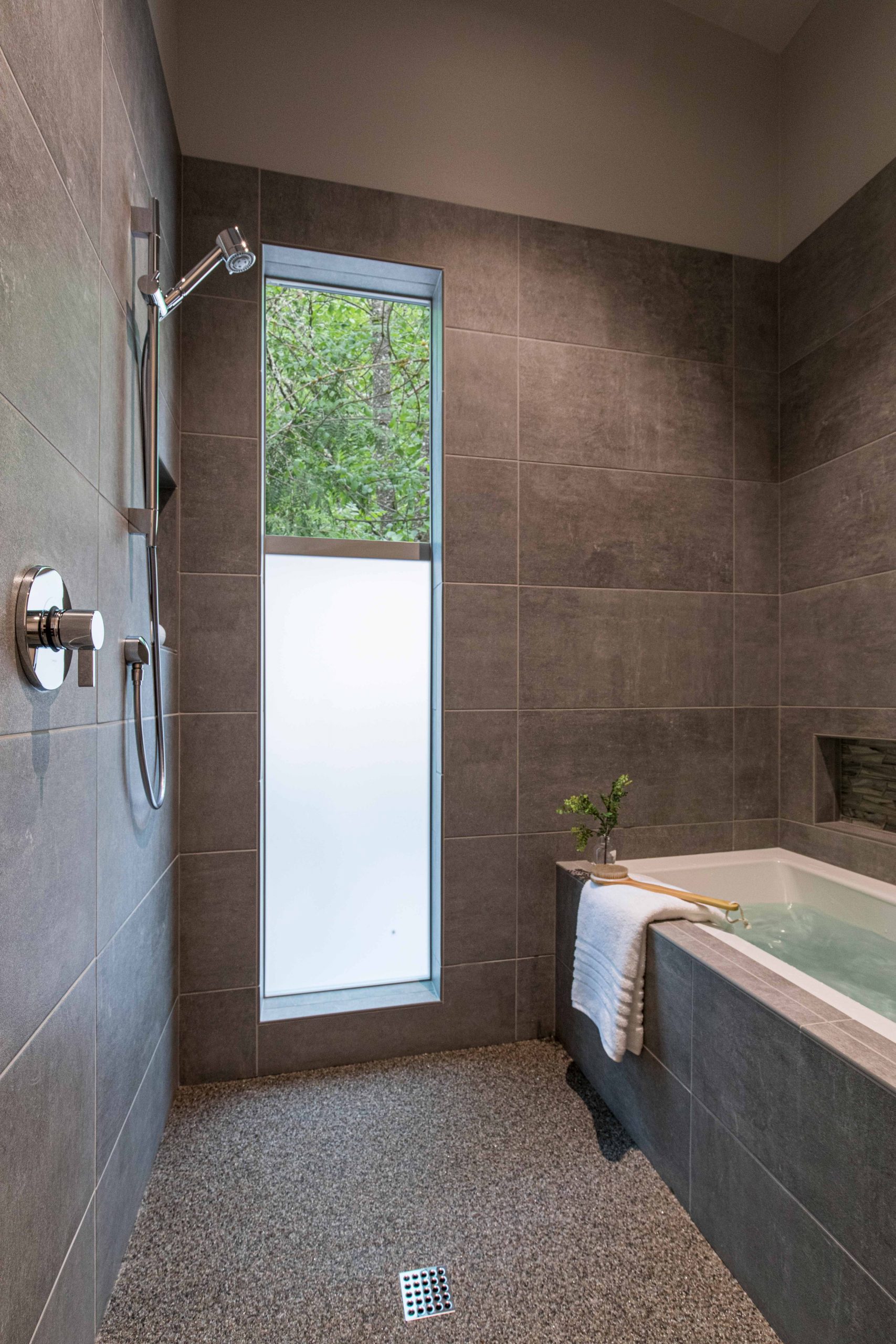 This concept originally came from Europe and Asia, where it’s more common to have this type of bathroom design because spaces are more compact. We’ve Americanized it since we still have large rooms to work within, so it’s turned into a hybrid design that we’re experimenting with as a country. There has been a shift toward energy and space-efficient homes and ADUs, so the wet room design works well.