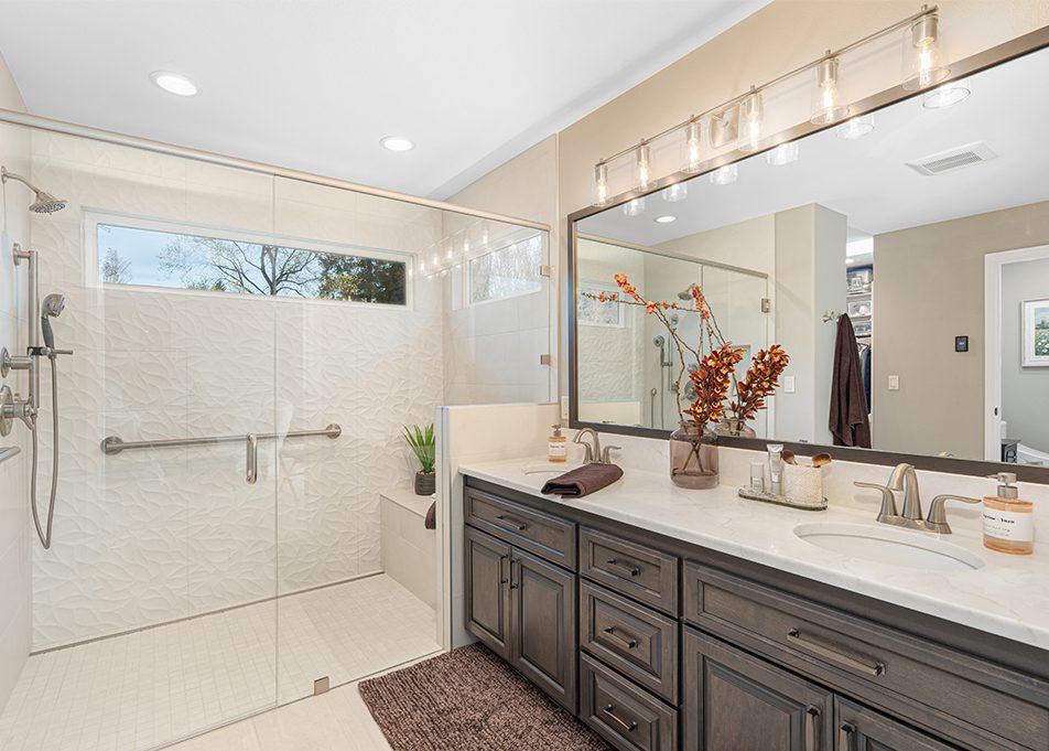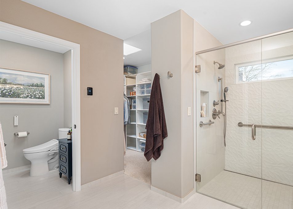 This 1992 Tigard home’s primary bathroom remodel was reimagined to support both comfort today and accessibility in the future. The goal was a space that feels open, calming, and easy to navigate, with thoughtful planning for aging in place. Every decision focused on improving flow, function, and long-term usability without sacrificing a clean, updated look.